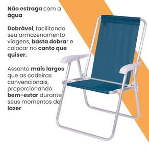 Não é a toa que ela traz conforto em seu nome! A Cadeira Alta Conforto possui encosto e assento mais largos que as cadeiras convencionais, proporcionando bem-estar durante seus momentos de lazer e descanso. Sua estrutura, inclusive dobradiças, é produzida pela Mor em alumínio de excelente qualidade e sua tela é feita em sannet liso, com proteção UV, anti-mofo e de fácil limpeza. Seus rebites são produzidos em aço! Seu encosto mais alto tem 85,5cm de altura e seus braços plásticos são feitos em formato anatômico. Apesar de seu tamanho, é fácil de carregar, devido à leveza do material. Suporta até 120 Kg. Dobrável, é muito fácil de colocar em qualquer cantinho. Descanse e relaxe em qualquer ambiente com a Cadeira Alta Conforto Sannet!
