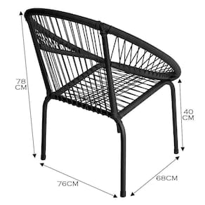 Kit 3 Cadeira De área Eclipse Tramado Fibra Sintética E Aço Preto