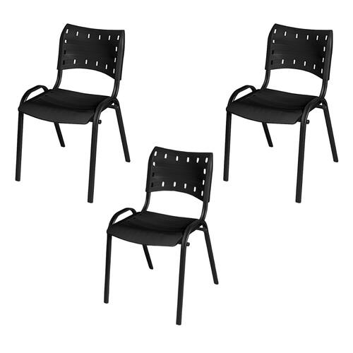 Kit 3 Cadeira ISO Tubo Oblongo Aço Industrial Empilhavel - Preto