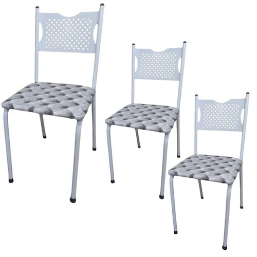 Kit 3 Cadeira para Cozinha MC Tubular Almofadada Estrutura Branca com Assento Captone