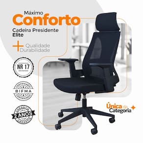 A Comfort Elite combina resistência, funcionalidade e elegância em uma cadeira ideal para home office ou ambientes corporativos.