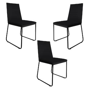 Kit 3 Cadeiras de Jantar Estofada Lille Base Preta Veludo Preto - Montanaris Decor