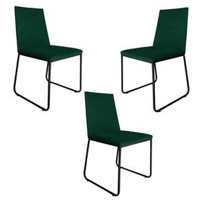 Kit 3 Cadeiras de Jantar Estofada Lille Base Preta Veludo Verde - Montanaris Decor