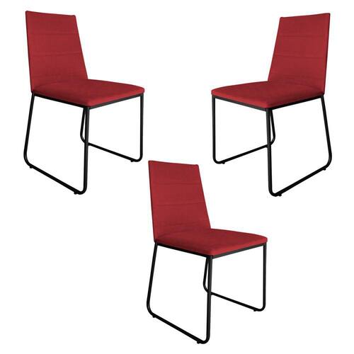 Kit 3 Cadeiras de Jantar Estofada Lille Base Preta Veludo Vermelho - Montanaris Decor