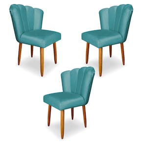Kit 3 Cadeiras de Jantar Pétala Estofada Pés Palito Veludo Azul Turquesa - Montanaris Decor