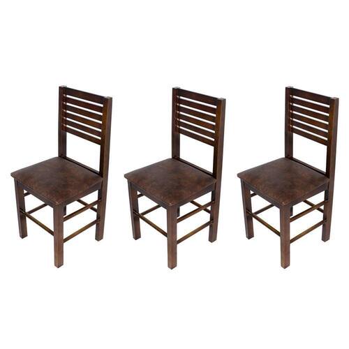 Kit 3 Cadeiras Fixas Laguna Imbuia Em Madeira Maciça Estofadas Marrom Para Restaurantes - Cor: Marrom
