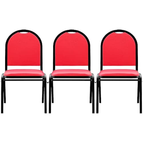 Procurando conforto e versatilidade? Vem conhecer o Kit 3 Cadeiras Hoteleiras Auditório Empilhável Sintético M23 Vermelho, da Mpozenato, confira abaixo!