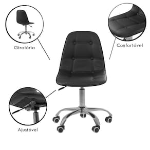 Para quem busca dar vida e sofisticação ao ambiente e conforto a Cadeira Office Eiffel Botonê é uma ótima opção. Ela se adapta a qualquer ambiente e é forte tendência em decoração. Projetadas para combinar com qualquer ambiente que você desejar usá-las: para sala de jantar, cozinha, no quarto ou escritório, áreas de lazer, e ambientes comerciais. A escolha de uma cadeira adequada é muito importante para evitar futuras lesões. Com esta cadeira você terá o conforto é o bem-estar que precisa ao longo do seu dia. Além disso, você pode colocá-la em qualquer lugar da sua casa ou oficina, pois o seu design se adapta a vários ambientes. Dê um toque mais moderno aos seus espaços! Conforto em todos os momentos O seu encosto reclinável lhe permitirá regular os diferentes pontos de inclinação, bem como deixá-la em posição livre para balançar durante as pausas e descansos. Ajuste-a a sua medida Com seu ajuste de altura, você poderá fixar a posição de seu torso em relação à mesa de trabalho e assim obterá uma cadeira mais confortável ao nível de suas necessidades. Mantenha-se em movimento As rodas permitirão a você mover e limpar facilmente o seu espaço. Você será capaz de movê-la sem dificuldade quando ém disso, sendo giratória, permitirá que você gire o assento 360 sem a necessidade de mudar de posição ou se mover de onde você está.