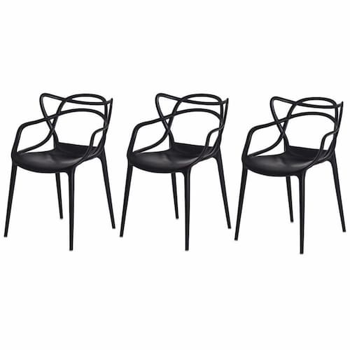 Kit 3 Cadeiras para Sala de Jantar Allegra Empilháveis Pretas