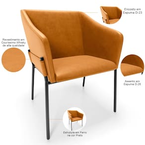 Que tal inovar na sala de jantar e apostar em um modelo de cadeira de jantar estilo poltrona?! Isso mesmo, com o Kit 03 Cadeiras Para Sala de Jantar Estar Living Olívia L02 Couríssimo Whisky, da Lyam Decor, você pode.