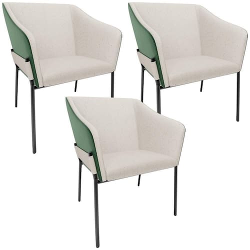 Que tal inovar na sala de jantar e apostar em um modelo de cadeira de jantar estilo poltrona?! Isso mesmo, com o Kit 03 Cadeiras Para Sala de Jantar Estar Living Olívia L02 Linho Cru Couríssimo Verde, da Lyam Decor, você pode.