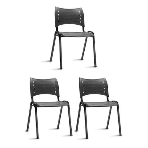 Kit 3 cadeiras prisma iso fixa desmontável empilhavel frisocar - recepção - sala de espera - cor preta Cadeira secretária assento e encosto em PP com base de aço desmontável fixa, pintura epoxi, ideal para igrejas, recepção, consultórios odontologicos, é possivel seu empilhamento. Acompanha manual para montágem. Medidas do produto montado: Altura: 81 cm Largura:56 cm Profundidade: 48 cm Marca: Sintonia Flex