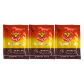 Kit 3 Sache de Café Torrado e Moído Tradicional 3 Corações - Sabor, aroma e tradição em cada xícara Desperte seus sentidos com o Café Torrado e Moído Tradicional 3 Corações, uma experiência marcante para quem aprecia o verdadeiro sabor do café brasileiro. Produzido com grãos selecionados e torrados no ponto ideal, este café entrega aroma intenso, corpo equilibrado e sabor encorpado, proporcionando um momento de prazer em cada gole. O 3 Corações Tradicional é reconhecido por sua qualidade, frescor e consistência, resultando em uma bebida de sabores maduros e aroma envolvente, perfeita para acompanhar o início do dia, a pausa da tarde ou um momento especial após as refeições. Além de todo o sabor, o produto é livre de TACC Trigo, Aveia, Cevada e Centeio , sendo adequado para quem busca uma opção sem glúten e com toda a energia natural do café. Diferenciais do Produto Café torrado e moído de alta qualidade Sabor intenso e aroma marcante Corpo equilibrado e torra no ponto ideal Livre de TACC sem glúten Mantém toda a energia natural do café Embalagem prática que preserva o frescor Sugestões de Consumo Ideal para preparo em cafeteira, coador ou prensa francesa Perfeito para acompanhar bolos, pães e sobremesas Informações do Produto Produto: Café Torrado e Moído Tradicional Marca: 3 Corações Tipo: Café torrado e moído Formato: Pó Torra: Média Aroma: Intenso e equilibrado Peso: 500g por unidade embalagem com 10 unidades Sem glúten: Sim livre de TACC Não descafeinado: Mantém toda a cafeína natural Marca: Não Informado