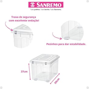 Kit 3 Caixa Alta Organizadora Brinquedo Objeto 56l Sanremo Kit 3 Caixas Altas Organizadoras 56,1 Litros Sanremo - Organização e Espaço para Suas Necessidades A Caixa Alta Organizadora 56,1 Litros Sanremo é a solução perfeita para quem busca praticidade e eficiência na organização dos espaços. Com um design moderno e funcional, esta caixa organizadora é ideal para armazenar uma variedade de itens, mantendo tudo em ordem e facilmente acessível. Características Principais Capacidade Generosa: Com uma capacidade de 56,1 litros, a caixa oferece amplo espaço para armazenar diversos tipos de objetos, desde roupas e brinquedos até ferramentas e materiais de escritório. Material Durável: Fabricada em polipropileno de alta qualidade, a caixa é resistente e durável, suportando o uso diário e protegendo os itens armazenados. Transparência Prática: A caixa possui um corpo transparente, permitindo visualizar o conteúdo sem a necessidade de abrir a tampa, facilitando a identificação rápida dos itens. Tampa Segura: A tampa possui um encaixe perfeito e firme, garantindo que os itens fiquem protegidos contra poeira e umidade. As travas laterais adicionais proporcionam segurança extra. Design Empilhável: Projetada para ser empilhável, a caixa permite otimizar o espaço de armazenamento, mantendo tudo organizado e economizando espaço. Alças Integradas: As alças laterais facilitam o transporte, mesmo quando a caixa está cheia, garantindo praticidade no manuseio. Benefícios Adicionais Versatilidade de Uso: Ideal para uso em casa, no escritório, em garagens ou áreas de serviço, a caixa organizadora é versátil e atende a diversas necessidades de organização. Fácil de Limpar: O material de polipropileno é fácil de limpar, permitindo que a caixa mantenha sua aparência nova e higiênica por mais tempo. Estilo Moderno: Com um design clean e moderno, a caixa se integra bem em qualquer ambiente, seja ele residencial ou comercial. Ideal Para Organização Residencial: Perfeita para organizar roupas sazonais, brinquedos, utensílios domésticos e muito mais. Uso em Escritórios: Ideal para armazenar materiais de escritório, documentos e outros suprimentos, mantendo o ambiente de trabalho ordenado. Armazenamento em Garagens e Oficinas: Excelente para guardar ferramentas, equipamentos e peças, facilitando o acesso e a organização. Especificações Técnicas Dimensões: 59cm x 57cm x 41cm Peso: 1,600kg Capacidade: 56,1 litros Material: Polipropileno de alta qualidade Cor: Transparente Período de : 30 dias A Caixa Alta Organizadora 56,1 litros Sanremo é a escolha ideal para quem busca organizar o espaço de forma prática e eficiente. Com sua capacidade generosa, durabilidade e design funcional, ela facilita a vida cotidiana, mantendo tudo em ordem e ao seu alcance. Invista na organização e na qualidade com a Caixa Alta Organizadora Sanremo e transforme o seu espaço em um ambiente mais prático e organizado. Conteúdo da Embalagem: 3 Caixas Alta Organizadora 56,1 litros A caixa pode ser Utilizado em ambientes externos A caixa é ideal para uso em ambientes internos. Se for utilizada em ambientes externos, recomenda-se protegê-la de exposição direta ao sol e à chuva para prolongar sua durabilidade. A caixa é adequada para armazenar alimentos não, a caixa não é recomendada para armazenar alimentos, pois não possui certificação para contato com alimentos. É ideal para armazenar itens domésticos, de escritório, ferramentas, entre outros. A caixa é empilhável sim, a caixa foi projetada para ser empilhável, permitindo otimizar o espaço de armazenamento e mantendo tudo organizado.