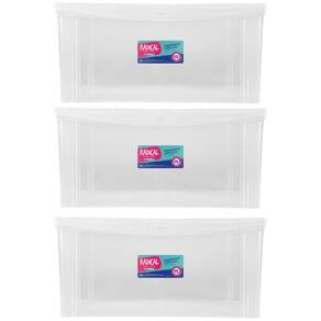 Kit 3 Caixas Máxi Organizadoras 65L Tampa com Trava Radical Incolor Multiuso.