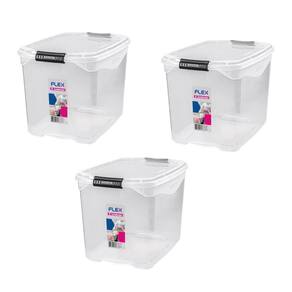 Kit 3 Caixas Organizadora Multiuso 29 litros FLEX Sanremo Kit 3 Caixas Organizadoras Multiuso 29 litros Sanremo A Caixa Organizadora Multiuso 29 litros Sanremo é a solução perfeita para quem busca praticidade e eficiência na organização dos espaços. Com um design moderno e funcional, esta caixa organizadora é ideal para armazenar uma variedade de itens, mantendo tudo em ordem e facilmente acessível. Características Principais: Capacidade Generosa: Com uma capacidade de 29 litros, a caixa oferece amplo espaço para armazenar diversos tipos de objetos, desde mantimentos e material de limpeza e higiene, a brinquedos e até ferramentas e materiais de escritório. Material Durável: Fabricada em polipropileno de alta qualidade, a caixa é resistente e durável, suportando o uso diário e protegendo os itens armazenados. Transparência Prática: A caixa possui um corpo transparente, permitindo visualizar o conteúdo sem a necessidade de abrir a tampa, facilitando a identificação rápida dos itens. Tampa Segura: A tampa possui um encaixe perfeito e firme, garantindo que os itens fiquem protegidos contra poeira e umidade. As travas laterais adicionais proporcionam segurança extra. Design Empilhável: Projetada para ser empilhável, a caixa permite otimizar o espaço de armazenamento, mantendo tudo organizado e economizando espaço. Alças Integradas: As alças laterais facilitam o transporte, mesmo quando a caixa está cheia, garantindo praticidade no manuseio. Benefícios Adicionais: Versatilidade de Uso: Ideal para uso em casa, no escritório, em garagens ou áreas de serviço, a caixa organizadora é versátil e atende a diversas necessidades de organização. Fácil de Limpar: O material de polipropileno é fácil de limpar, permitindo que a caixa mantenha sua aparência nova e higiênica por mais tempo. Estilo Moderno: Com um design clean e moderno, a caixa se integra bem em qualquer ambiente, seja ele residencial ou comercial. Ideal Para: Organização Residencial: Perfeita para organizar brinquedos, utensílios domésticos e muito mais. Uso em Escritórios: Ideal para armazenar materiais de escritório, documentos e outros suprimentos, mantendo o ambiente de trabalho ordenado. Armazenamento em Garagens e Oficinas: Excelente para guardar ferramentas, equipamentos e peças, facilitando o acesso e a organização. Especificações Técnicas: Dimensões aproximada da unidade: 42cm de largura x 26cm de altura x 30cm de profundidade Peso aproximado unidade: 800g Capacidade: 29 litros Material: polipropileno de alta qualidade Cor: transparente Período de : 30 dias A Caixa Organizadora Multiuso 29 litros Sanremo é a escolha ideal para quem busca organizar o espaço de forma prática e eficiente. Com sua capacidade generosa, durabilidade e design funcional, ela facilita a vida cotidiana, mantendo tudo em ordem e ao seu alcance. Invista na organização e na qualidade e transforme o seu espaço em um ambiente mais prático e organizado. Conteúdo da Embalagem: 3 Caixas Organizadoras Multiuso 29 litros A caixa pode ser Utilizado em ambientes externos A caixa é ideal para uso em ambientes internos. Se for utilizada em ambientes externos, recomenda-se protegê-la de exposição direta ao sol e à chuva para prolongar sua durabilidade. A caixa é empilhável sim, a caixa foi projetada para ser empilhável, permitindo otimizar o espaço de armazenamento e mantendo tudo organizado. Linha FLEX