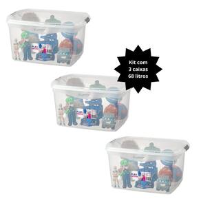 Kit 3 Caixas Organizadora Multiuso 68 litros Sanremo Kit 3 Caixas Organizadora Multiuso 68 litros Sanremo A Caixa Organizadora Multiuso 68 litros Sanremo é a solução perfeita para quem busca praticidade e eficiência na organização dos espaços. Com um design moderno e funcional, esta caixa organizadora é ideal para armazenar uma variedade de itens, mantendo tudo em ordem e facilmente acessível. Características Principais Capacidade Generosa: Com uma capacidade de 68 litros, a caixa oferece amplo espaço para armazenar diversos tipos de objetos, desde mantimentos e material de limpeza e higiene, a brinquedos e até ferramentas e materiais de escritório. Material Durável: Fabricada em polipropileno de alta qualidade, a caixa é resistente e durável, suportando o uso diário e protegendo os itens armazenados. Transparência Prática: A caixa possui um corpo transparente, permitindo visualizar o conteúdo sem a necessidade de abrir a tampa, facilitando a identificação rápida dos itens. Tampa Segura: A tampa possui um encaixe perfeito e firme, garantindo que os itens fiquem protegidos contra poeira e umidade. As travas laterais adicionais proporcionam segurança extra. Design Empilhável: Projetada para ser empilhável, a caixa permite otimizar o espaço de armazenamento, mantendo tudo organizado e economizando espaço. Alças Integradas: As alças laterais facilitam o transporte, mesmo quando a caixa está cheia, garantindo praticidade no manuseio. Benefícios Adicionais Versatilidade de Uso: Ideal para uso em casa, no escritório, em garagens ou áreas de serviço, a caixa organizadora é versátil e atende a diversas necessidades de organização. Fácil de Limpar: O material de polipropileno é fácil de limpar, permitindo que a caixa mantenha sua aparência nova e higiênica por mais tempo. Estilo Moderno: Com um design clean e moderno, a caixa se integra bem em qualquer ambiente, seja ele residencial ou comercial. Ideal Para Organização Residencial: Perfeita para organizar brinquedos, utensílios domésticos e muito mais. Uso em Escritórios: Ideal para armazenar materiais de escritório, documentos e outros suprimentos, mantendo o ambiente de trabalho ordenado. Armazenamento em Garagens e Oficinas: Excelente para guardar ferramentas, equipamentos e peças, facilitando o acesso e a organização. Especificações Técnicas Dimensões aproximadas da unidade: 64cm de largura x 34cm de altura x 44cm de profundidade Peso aproximado da unidade: 1,550kg Capacidade: 68 litros Material: Polipropileno de alta qualidade Cor: Transparente Período de : 30 dias A Caixa Organizadora Multiuso 68 litros Sanremo é a escolha ideal para quem busca organizar o espaço de forma prática e eficiente. Com sua capacidade generosa, durabilidade e design funcional, ela facilita a vida cotidiana, mantendo tudo em ordem e ao seu alcance. Invista na organização e na qualidade e transforme o seu espaço em um ambiente mais prático e organizado. Conteúdo da Embalagem: 3 Caixas Organizadora Multiuso 68 litros A caixa pode ser Utilizado em ambientes externos A caixa é ideal para uso em ambientes internos. Se for utilizada em ambientes externos, recomenda-se protegê-la de exposição direta ao sol e à chuva para prolongar sua durabilidade. A caixa é empilhável sim, a caixa foi projetada para ser empilhável, permitindo otimizar o espaço de armazenamento e mantendo tudo organizado.