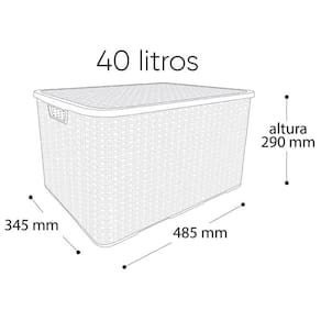 Kit 3 Caixas Organizadoras Rattan PRETA 40 Litros Arqplast Kit 3 Caixas Organizadoras Rattan PRETA 40 Litros Arqplast Caixa organizadora em plástico com tampa, que facilita a organização De guarda roupas e armários, por ser uma peça charmosa expor em Ambientes abertos dá um toque especial a decoração. Combina com vários ambientes, como cozinha, sala, banheiro e quarto. Material - Polipropileno DescriçãoDimensões:480 X 340 X 890mm Corpo 505 X 370 X 165mm Tampa comprimento x largura x altura medida do produtoDimensões: 485 X 345 X 290mm comprimento x largura x altura