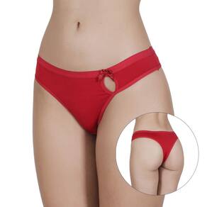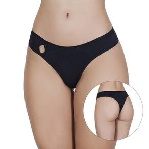 Calcinha fio dental em microfibra, detalhe vazado na lateral com lacinho em cetim e forro de algodão.