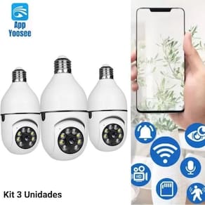 Kit 3 Câmera De Segurança Lâmpada Wifi Prova D'agua Infravermelho Interna.Externa Cor Branco - Camera, Giratória, 360 Camera Lâmpada Wifi Ip Segurança Panoramica Giratoria Esta câmera dome é perfeita para combater vandalismo e situações adversas graças à sua excelência em durabilidade. Sua cúpula é fechada em uma caixa resistente, o que ajudará a mantê-la protegida contra solavancos e empurrões. Tem uma resolução Full HD pela qual você será capaz de gravar com a melhor qualidade e, assim, ter uma vigilância clara e precisa sobre seus espaços. Graças à sua função de visão noturna incluída, você não precisará mais se preocupar com a iluminação dos seus espaços Apenas uma câmera consegue cobrir uma área bem maior do que uma câmera comum. Você consegue girar a imagem através do celular e controlar o zoom. É possível acender a luz remotamente através da internet, conversar com quem está no local e você ouve tudo o que está sendo falado onde a câmera esta instalada. Sistema extremamente simples de instalar, basta colocar em um bocal de lâmpada comum, tem o tamanho e formato de uma lâmpada de led comum, discreto. Conecta-se a sua rede wifi e a partir daí você pode visualizar e interagir de qualquer lugar do mundo através do seu celular ou tablet. Se alguém entra no ambiente você receberá uma mensagem em seu telefone e poderá visualizar/interagir com a pessoa. CARACTERÍSTICAS Auto Tracking - Rastreamento Automático Monitoramento 360o - inclinação automática ou por controle remoto Sistema Night Vision - Visão Noturna e Diurna com Infra Vermelho Alarme de movimentação - Dispara o alarme no seu celular ao detectar movimentos suspeitos Sistema de áudio - Microfone com gravador de áudio detecta todos os sons do ambiente Alta Durabilidade - Câmera tem o grau de proteção IP44 Proteção contra respingos de água. Não orientamos a instalação em áreas totalmente descobertas Acesso Remoto - Movimentação manual via controle remoto através do seu celular CARACTERISTICAS: Compatível com o APP Yoosee Compativel apenas wifi 2.4ghz, não é compatível com 5Ghz Conexão móvel 1080p Full HD - 2MP Controle ptz: 355 graus horizontal e 100 graus vertical Detector de movimento: quando o dispositivo detectar movimento de uma pessoa, automaticamente ela seguirá o movimento do alvo. Armazenamento por Cartão TF/microSD: Máximo de 128GB Visão noturna colorida com LEDs brancos pode ser desativada Áudio bidirecional: possibilitando a conversa entre o celular e a câmera Grau de proteção: IP44 Consumo de energia: 3w Compressão de vídeo: Smart H.264 Lente: 3.6mm Dimensões: 3x6,5x3cm Peso: 350gr Cada ITENS INCLUSOS: 3 Câmera Lâmpada 3D 3 Suporte para Fixação E27 3 Manual de instruções 3 Kit Parafusos Homologação Anatel: 112572013224 Marca: Não Informado Ean: 7895341010862