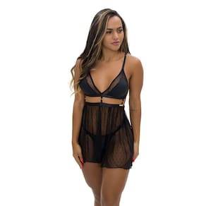 Com um designer inovador, essa camisola em tule possui uma abertura no meio. Possui uma linda calcinha fio com detalhe em tule. Modelo sem bojo, com forro de microfibra nos seios e forro de algodão na calcinha, as alças são reguláveis. A camisola Juliette é perfeita para noites mais quentes.