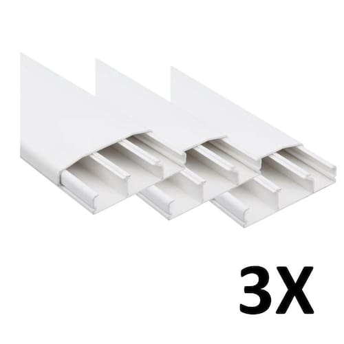 A canaleta é que responsável por proteger os cabos contra danos externos e armazenar condutores elétricos isolados, mantendo o ambiente esteticamente mais bonitas e realizando um melhor acabamento para cabos que por algum motivo têm que ficar expostos.Descrição do produto: Canaleta com Divisória Com 3 Divisórias Material: PVC Acompanha fita dupla face em toda a estruturaEspecificações: Cor: Branca Comprimento: 2M Largura: 4cm Altura: 1,5cm Quantidade: 3 unidades Marca: Canaleta