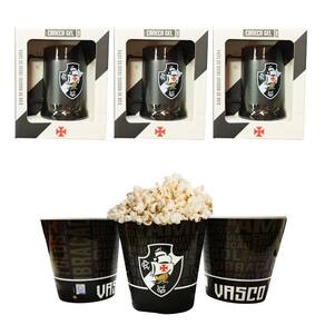 Kit 3 Caneca Copo Gel 300ml Isolante Térmico + Balde Pipoca Preto Tampa Canudo Infantil Vasco