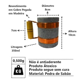 Kit 3 Canecas Alça de Cobre Pedra Sabão Chopp Cerveja 350ml mantém tanto o calor, quanto o frio, sendo assim, poderá utilizar a caneca para chopp, cerveja, bebidas geladas e quentes.