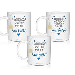 As Canecas Convite são uma forma linda e deliciosa de convidar ou agradecer os pequenos por participarem de uma data tão única Com capacidade de 300 ml, você tem a opção de encher as canecas com todo tipo de doce e assim encantar os futuros Pajens, O sim deles será GARANTIDO Conteúdo: 3 Canecas Convite Branca Personalizado Pajem Capacidade: 300 ml Cor: Branco Material: Policarbonato Quantidade: 3 Peças Marca: Não Informado