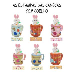 Kit 3 Canecas Emborrachada + 3 Coelho Coelhinho Páscoa Pelúcia