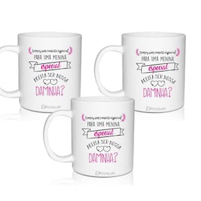 As Canecas Convite são uma forma linda e deliciosa de convidar ou agradecer os pequenos por participarem de uma data tão única Com capacidade de 300 ml, você tem a opção de encher as canecas com todo tipo de doce e assim encantar as futuras Daminhas. O sim delas será GARANTIDO Conteúdo: 3 Canecas Convite Branca Personalizado Daminha Capacidade: 300 ml Cor: Branco Material: Policarbonato Quantidade: 3 Peças