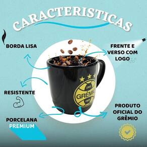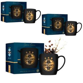 Kit 3 canecas xícara preto dourado porcelana urban 300ml serie ouro grêmio oficial Detalhes - kit 3 unidades caneca A caneca porcelana urban serie ouro é perfeita para os apaixonados demonstrarem todo o carinho pelo seu time do coração.