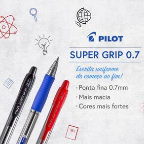 Kit 3 Caneta Esferográfica 0.7mm Super Grip Retrátil Ponta de Aço - Pilot Tecnologia Japonesa