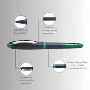 Kit 3 Canetas Esferográfica Schneider Rollerball One Business Verde Traço firme, escrita ultra suave e design premiado A Schneider One Business é a rollerball perfeita para quem busca precisão, fluidez e conforto ao escrever. Com uma experiência de escrita tão leve e macia, ela causa um efeito WOW imediato em quem a utiliza Destaque internacional No ano seguinte ao seu lançamento, essa caneta foi eleita Produto do Ano na feira Paperworld em Frankfurt, Alemanha, sendo reconhecida pelo seu design inovador e qualidade excepcional. Principais Características - Escrita super fluida - tecnologia Super-Flow garante fluxo de tinta constante e uniforme. - Traço fino 0,6 mm - ideal para escrita detalhada e precisa. - À prova dágua - atende à norma ISO 14145-2. - Grande reservatório de tinta - com indicador de nível para maior controle. - Tecnologia Cap-off - não resseca mesmo destampada por 2 a 3 dias. - Design ergonômico - corpo emborrachado para maior conforto ao escrever. - Clip metálico robusto - resistente e elegante. - Sustentável - produção com emissão neutra de CO2. 1. A One Business pode ser recarregada - Não, esse modelo não é recarregável, mas conta com um grande reservatório de tinta para alta durabilidade. 2. A tinta seca rapidamente - Sim O sistema Super-Flow garante uma secagem rápida, evitando borrões. 3. Essa caneta é boa para - Sim Seu traço fino e fluidez fazem dela a parceira ideal para anotações precisas e assinaturas elegantes. 4. Ela é indicada para canhotos - Sim A secagem rápida da tinta minimiza manchas ao escrever. Schneider One Business - escrita sofisticada, macia e confiável, com um design que impressiona Marca: Não Informado Ean: 7892227574265