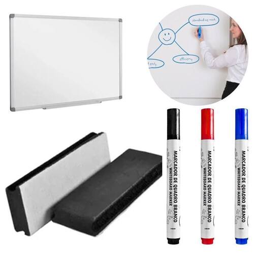 Kit Completo: Inclui um apagador e três canetas de cores diferentes, oferecendo tudo o que você precisa para anotar e apagar em quadros brancos Facilidade de Uso: Canetas de escrita suave e apagador de alta eficiência, garantindo um uso prático e eficaz