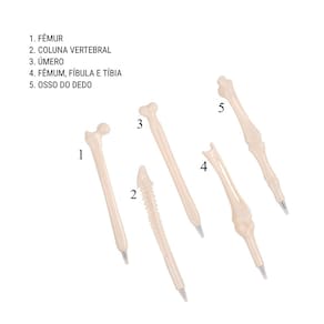 Kit 3 Canetas Ossos Esfero. P/ Enfermagem / FisioterapiaCada kit contém 3 canetas, pode ocorrer de repetir algum modelo.O modelo CANETA EM FORMATO DE OSSOS HUMANO deixará sua escrita divertida e confortável, isso por serem extremamente adaptas as mãos, além de trazerem um grande charme na hora dos estudos ou trabalho.Perfeito para presentear amigos, colegas e parentes que atuam na área da saúde como: medicina, enfermagem, fisioterapia e etc. Ou para as pessoas que não trabalham também. Muito boa também para que sejam utilizá-las como lembraça !Material: PlásticoTamanho: 14cmTinta em gel nas cores azul e preta - ( as cores são enviadas diversificadas)