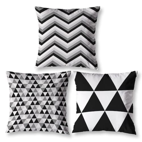 Kit 3 Capas De Almofada 40Cm X 40Cm Estampadas Geo Preto
