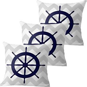 Kit 3 Capas De Almofadas Azul Timão Navegação Marítima -
