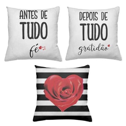 Kit 3 Capas De Almofadas Decorativas Personalizado 40x40cm Estampa Coração