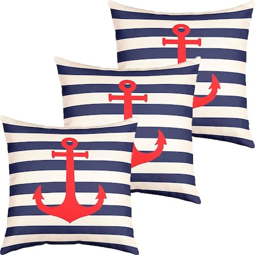 Kit 3 Capas De Almofadas Vermelho Âncora Navegação Marítima -