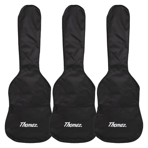 A capa para guitarra Thomaz foi cuidadosamente projetada para transportar e proteger sua guitarra, oferecendo o ajuste perfeito para instrumentos de 39”. Equipada com alça lateral e traseira, proporciona praticidade no transporte, além de um bolso frontal com zíper para armazenamento adicional. Ideal para músicos que valorizam tanto a segurança quanto a conveniência ao transportar seu instrumento.Especificações - Marca: Thomaz- Tamanho: 39”- Cor: Preta- Fechamento: Zíper- Medidas Aprox.: 7,5 x 36 x 100 cmConteúdo da Embalagem- 3 Capas para Guitarra Preta Thomaz*imagens meramente ilustrativas