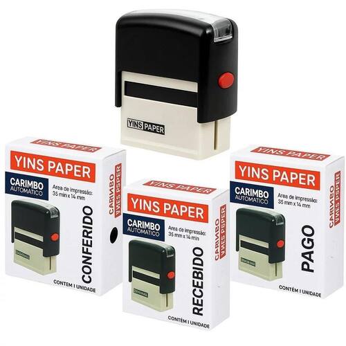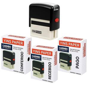 Palavras no kit: PAGO, CONFERIDO e RECEBIDO Autoentintado e recarregável - pronto para usar Impressão nítida e durável Ideal para empresas, comércios, depósitos e escritórios Área de impressão: 1,4 cm x 3,8 cm