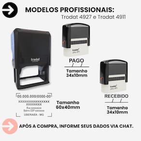 MODELOS: TRODAT 4927 (CNPJ) e TRODAT 4911 (“PAGO”) e (“RECEBIDO”). Faça uma impressão marcante em cada documento com os carimbos Profissionais da Trodat, a escolha confiável para aqueles que exigem qualidade e durabilidade.