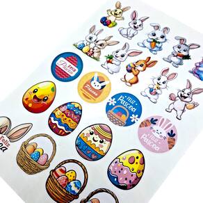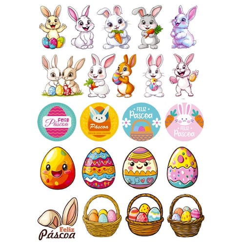Características: - Quantidade: 66 unidades - Tamanho: 4 cm - Tema: Páscoa (coelhinhos, ovos, cesto de ovos, etc.) - Versatilidade: Ideal para personalizar presentes, cartões, embalagens e decorações - Adesivo de alta qualidade: Fácil de aplicar e fixação duradoura