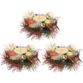 -03 Unidades Castiçal Natal Decorado Dourado e Vermelho 15cm – Master Christmas