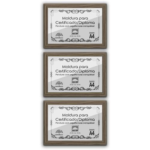 Kit 3 Molduras de Certificados/Diplomas A4 Com Tela de Acetato e Fundo MDF