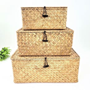 Confeccionadas em fibra natural trançada, estas caixas trazem a beleza orgânica e a textura acolhedora que complementam diversos estilos de decoração, do boho ao minimalista. O kit é composto por três tamanhos: a caixa p, com aproximadamente 11,5 cm de altura, 24 cm de largura e 14 cm de profundidade, pesando 210g; a caixa m, com cerca de 13,5 cm de altura, 29,5 cm de largura e 21 cm de profundidade, pesando 360g; e a caixa g, medindo aproximadamente 15 cm de altura, 36,5 cm de largura e 23,5 cm de profundidade, com 430g. Juntas, elas oferecem um espaço prático pra guardar uma variedade de objetos, desde acessórios e produtos de higiene a livros e correspondências, mantendo tudo arrumado e acessível. A diferença de tamanhos permite encaixá-las em diferentes espaços ou utilizá-las em conjunto para uma composição organizada e visualmente agradável.