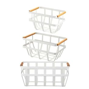 Kit 3 Cesto De Metal Com Alca De Bambu Frutas Branco