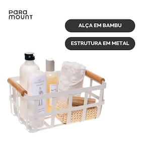 Kit 3 cesto de metal com alca de bambu frutas multiuso ========== sobre o produto ========== Os cestos de metal com alça de bambu multiuso são a solução ideal para quem busca organização e estilo. Com design moderno e funcional, é perfeito para armazenar e organizar itens em diferentes ambientes, como cozinha, banheiro, escritório ou quarto. Suas alças de bambu garantem praticidade no manuseio, enquanto o corpo em metal proporciona durabilidade e resistência. Um item indispensável para otimizar espaços com elegância. ========== especificações ========== Design minimalista que combina metal resistente e alças de bambu natural. Tamanho compacto, ideal para organizar objetos diversos. Versátil: pode ser em cozinhas, banheiros, escritórios e outros ambientes. ========== ficha técnica ========== Medidas: 33 x 17 x 15,5cm 1 unidade Medidas: 29,5 x 15 x 10cm 1 unidade Medidas: 23,5 x 16 x 15,5cm 1 unidade Material: metal / bambu Marca: paramount : 3 meses Estamos online para quaisquer dúvidas, Agradecemos e aguardamos o seu pedido. P: o cesto pode ser utilizado para organizar alimentos R: sim, o cesto é ideal para organizar alimentos embalados ou frutas e vegetais. P: é resistente à umidade R: sim, o cesto possui corpo de metal resistente à umidade, ideal para uso em banheiros ou cozinhas. P: as alças de bambu são firmes R: sim, as alças de bambu são projetadas para suportar o peso do cesto com segurança e praticidade. P: o produto é novo ou