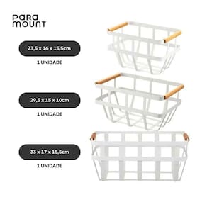 Kit 3 cesto de metal com alca de bambu frutas multiuso ========== sobre o produto ========== Os cestos de metal com alça de bambu multiuso são a solução ideal para quem busca organização e estilo. Com design moderno e funcional, é perfeito para armazenar e organizar itens em diferentes ambientes, como cozinha, banheiro, escritório ou quarto. Suas alças de bambu garantem praticidade no manuseio, enquanto o corpo em metal proporciona durabilidade e resistência. Um item indispensável para otimizar espaços com elegância. ========== especificações ========== Design minimalista que combina metal resistente e alças de bambu natural. Tamanho compacto, ideal para organizar objetos diversos. Versátil: pode ser em cozinhas, banheiros, escritórios e outros ambientes. ========== ficha técnica ========== Medidas: 33 x 17 x 15,5cm 1 unidade Medidas: 29,5 x 15 x 10cm 1 unidade Medidas: 23,5 x 16 x 15,5cm 1 unidade Material: metal / bambu Marca: paramount : 3 meses Estamos online para quaisquer dúvidas, Agradecemos e aguardamos o seu pedido. P: o cesto pode ser utilizado para organizar alimentos R: sim, o cesto é ideal para organizar alimentos embalados ou frutas e vegetais. P: é resistente à umidade R: sim, o cesto possui corpo de metal resistente à umidade, ideal para uso em banheiros ou cozinhas. P: as alças de bambu são firmes R: sim, as alças de bambu são projetadas para suportar o peso do cesto com segurança e praticidade. P: o produto é novo ou Marca: Não Informado